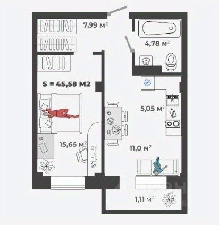 • ✅ Минимальная площадь: 42 м²