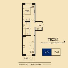 Продаётся 2-комнатная квартира в строящемся доме (Дом 22 2 тип), срок сдачи: IV-кв. 2027, общей площадью 47.53 кв.м., на 4 этаже. Новый жилой комплекс от группы компаний "Трансстрой" расположен по адресу: г. Кызыл, по ул. Кечил-Оола.