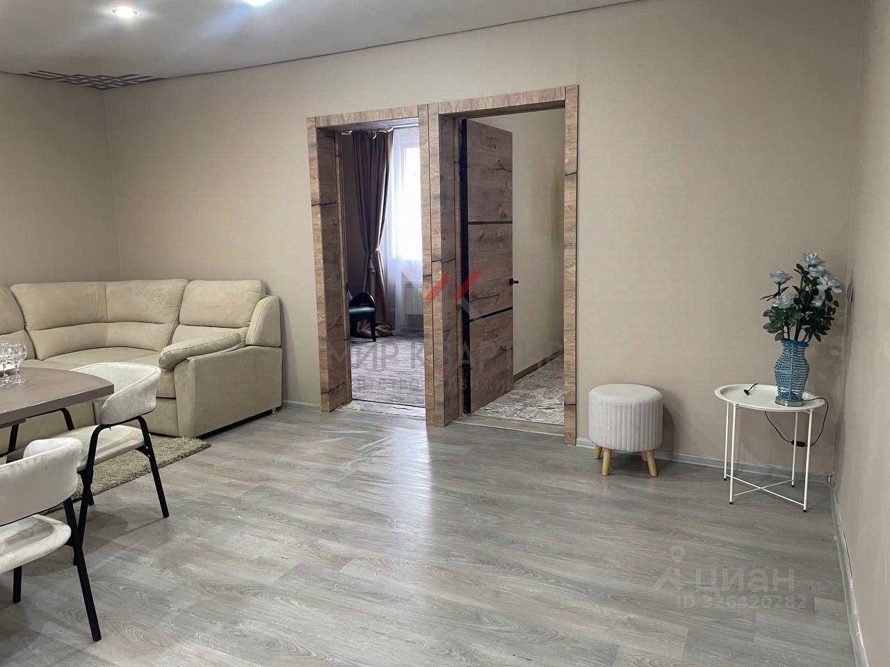 просторная совмещённая зона зал + кухня